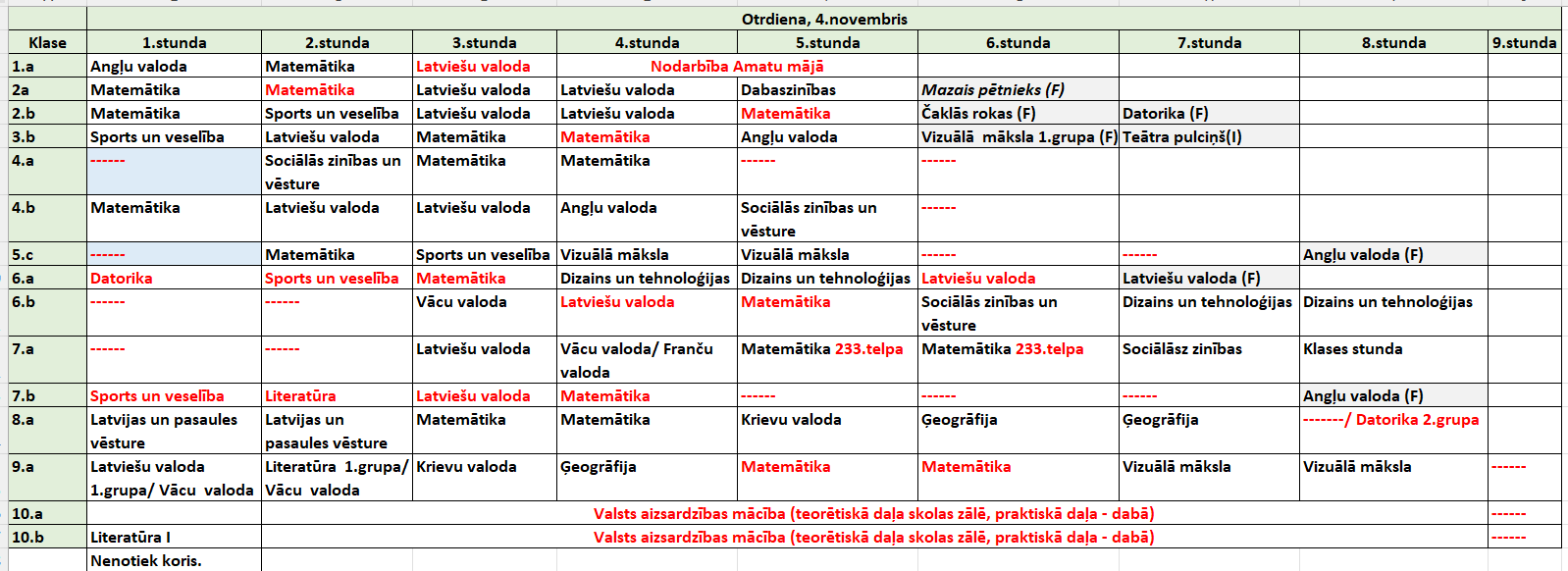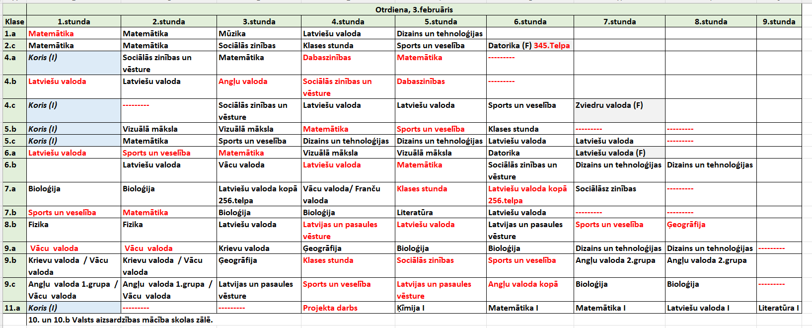 1. 8:10 – 8:50 2. 9:00 – 9:40 3. 9:50 – 10:30 4. 10:40 – 11:20 5. 11:50 – 12:30 6. 12:50 – 13:307. 13:40 – 14:208. 14:30 – 15:109. 15:20 – 16:0010.16:05 – 16:45